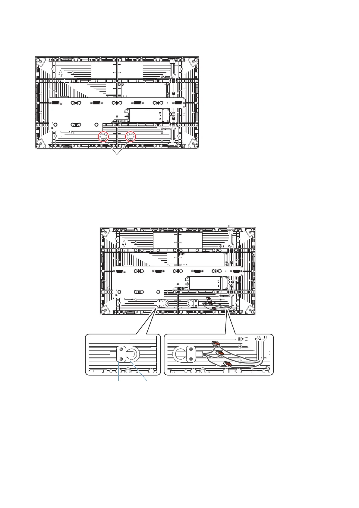 There are holes on the back of the cabinet for passing signal cables and power cords.