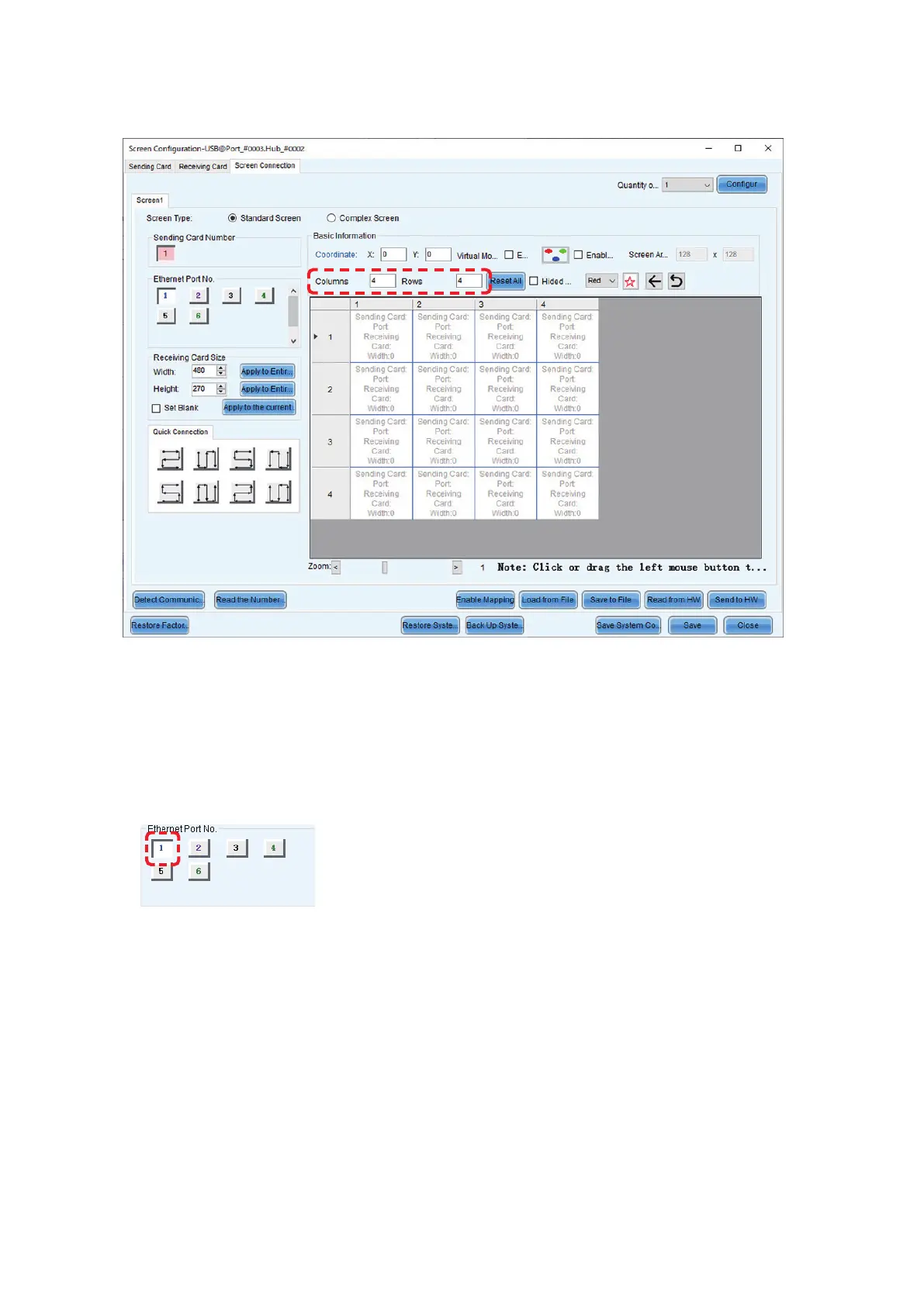 Since the configuration is 4 (columns) x 4 (rows), enter Columns=4 and Rows=4. A 4 (columns) x 4