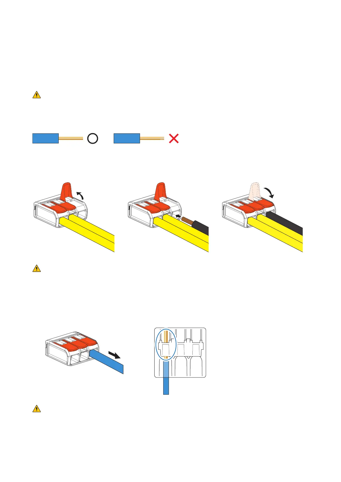 Lightly pull on the wires one by one to check that they will not be pulled out.