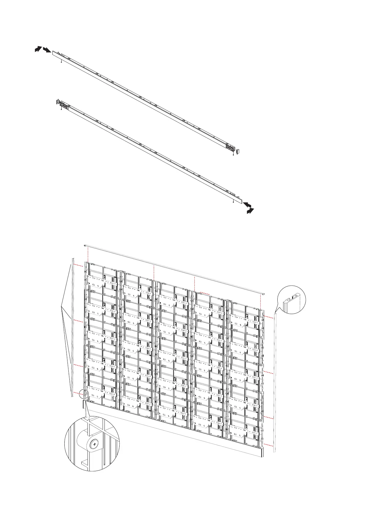 Insert the slot nuts inside the over frame into the holes of the screw for connecting cabinets and x them with