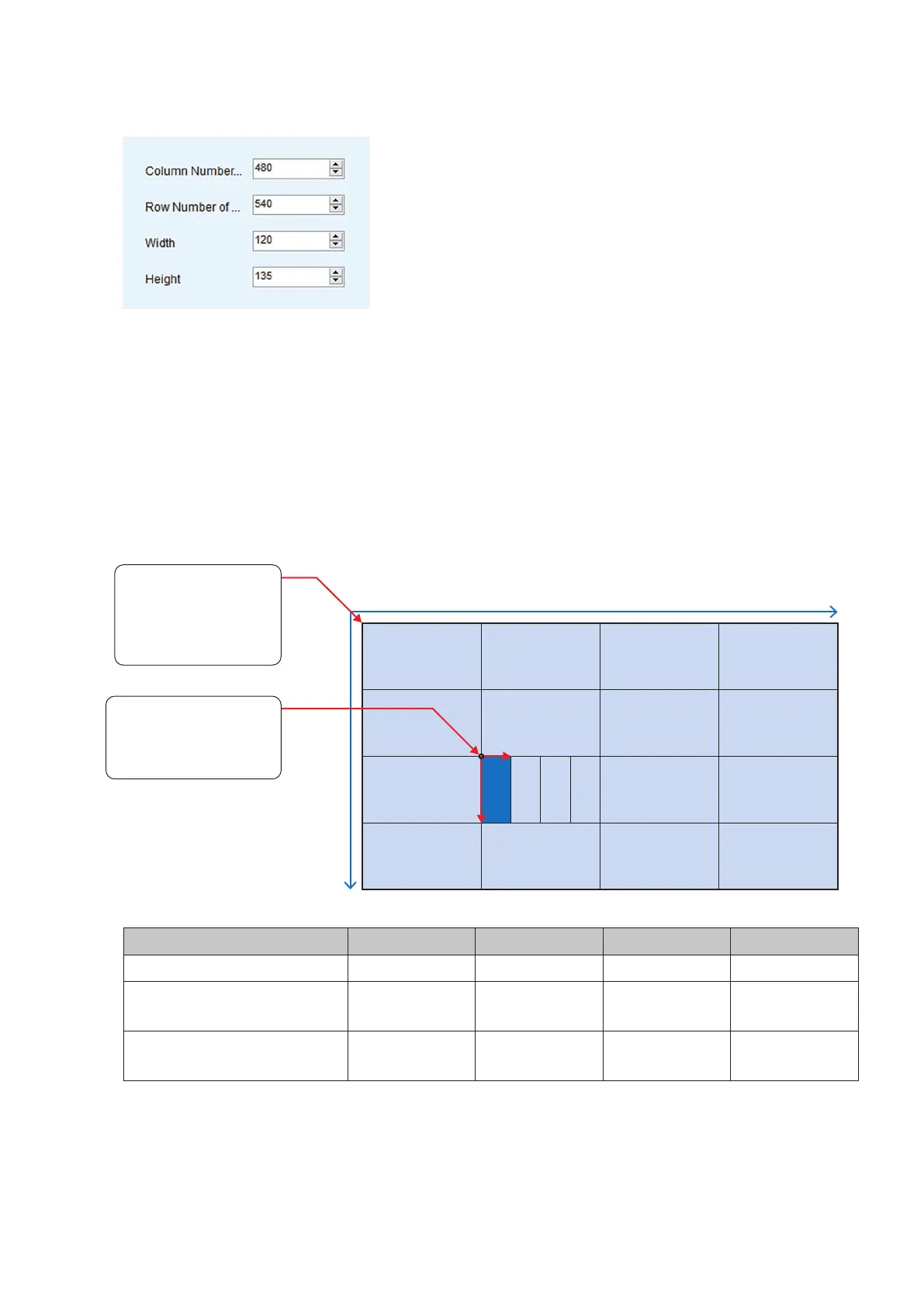 Row Number: The position (pixel) on the vertical axis of the starting point (top left) of the
