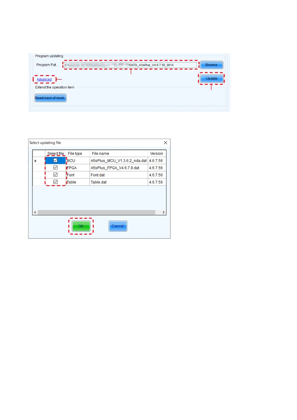 A screen similar to the following is displayed. Check all les and click “OK”.