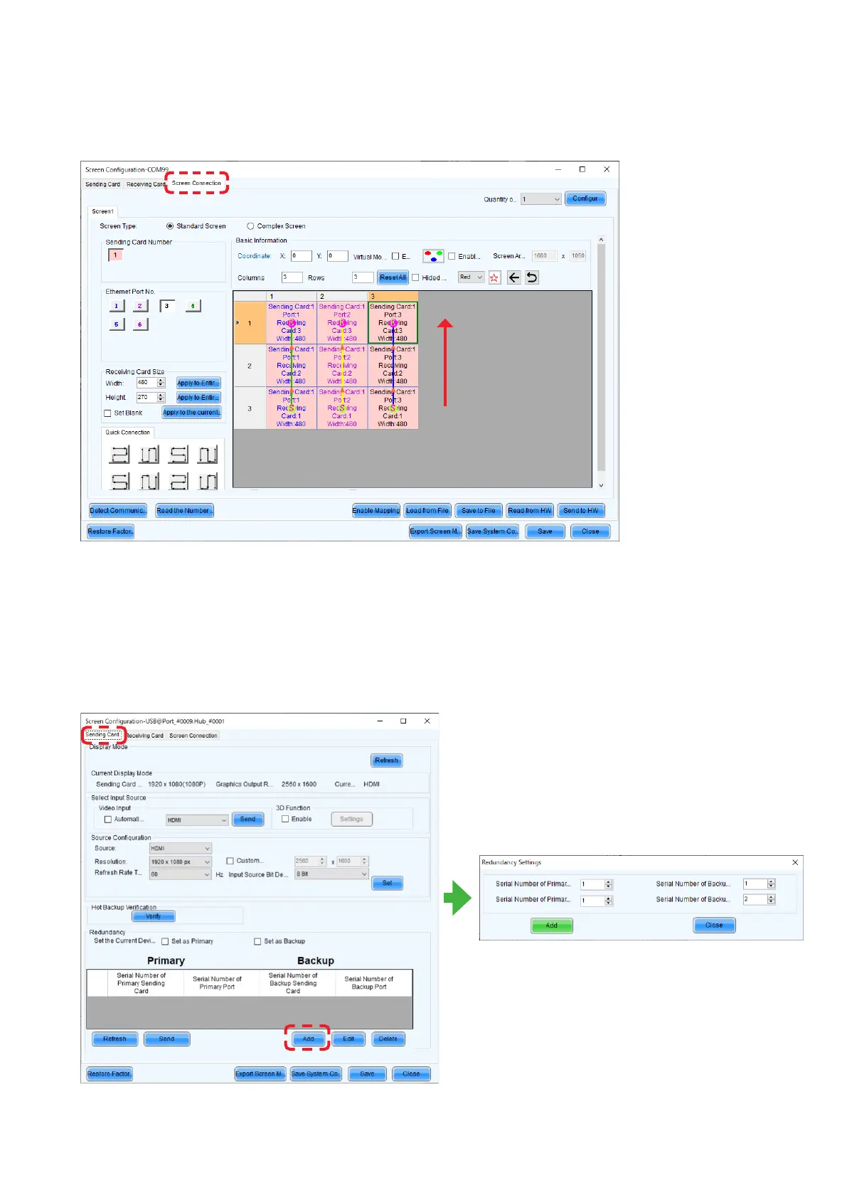 Select/enter the value for “Screen Type”, “Receiving Card Size”, “Columns” and “Rows”, and use “Ethernet Port