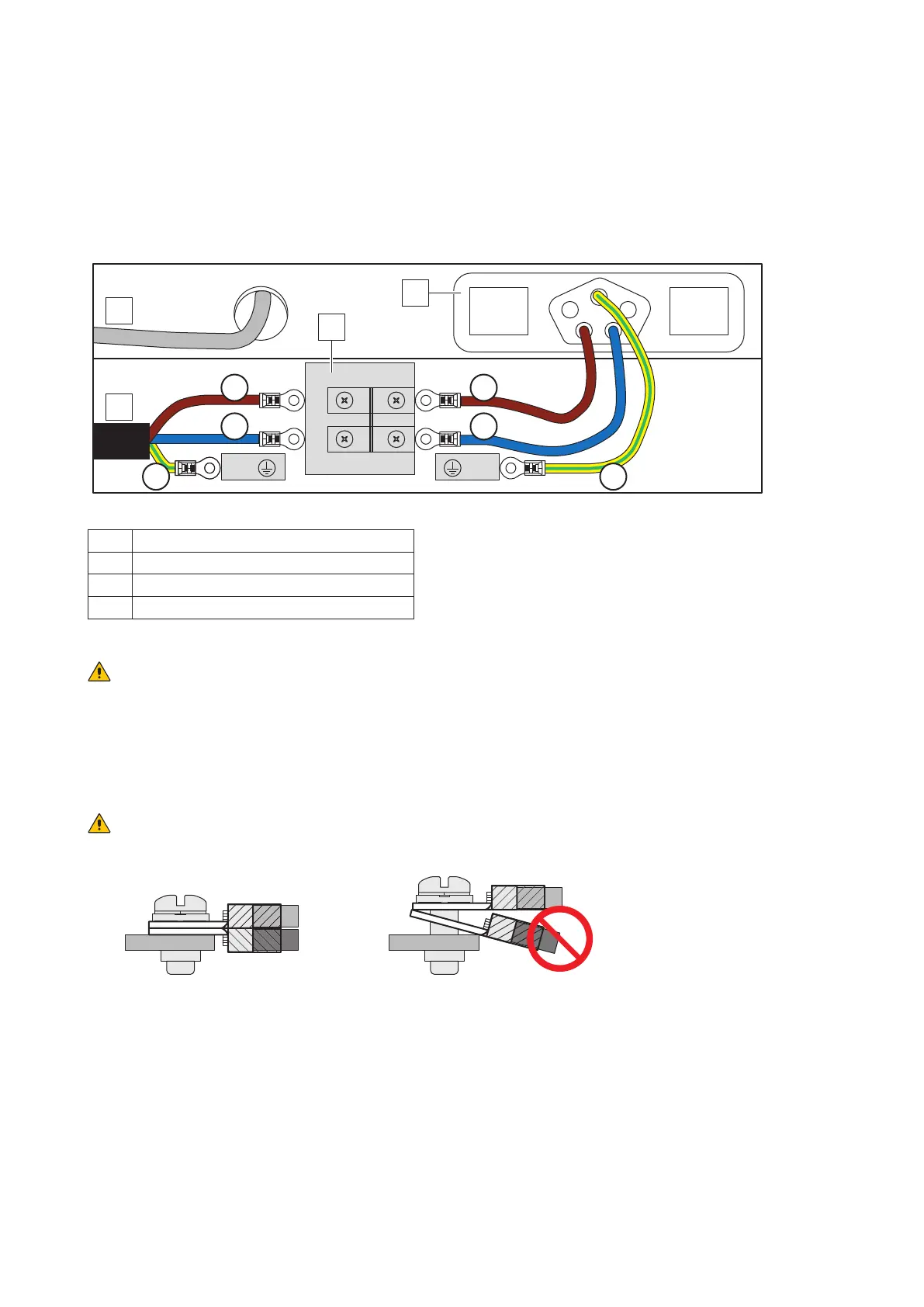 When attaching two cables with one screw, place the ring terminals of the cables back to back.