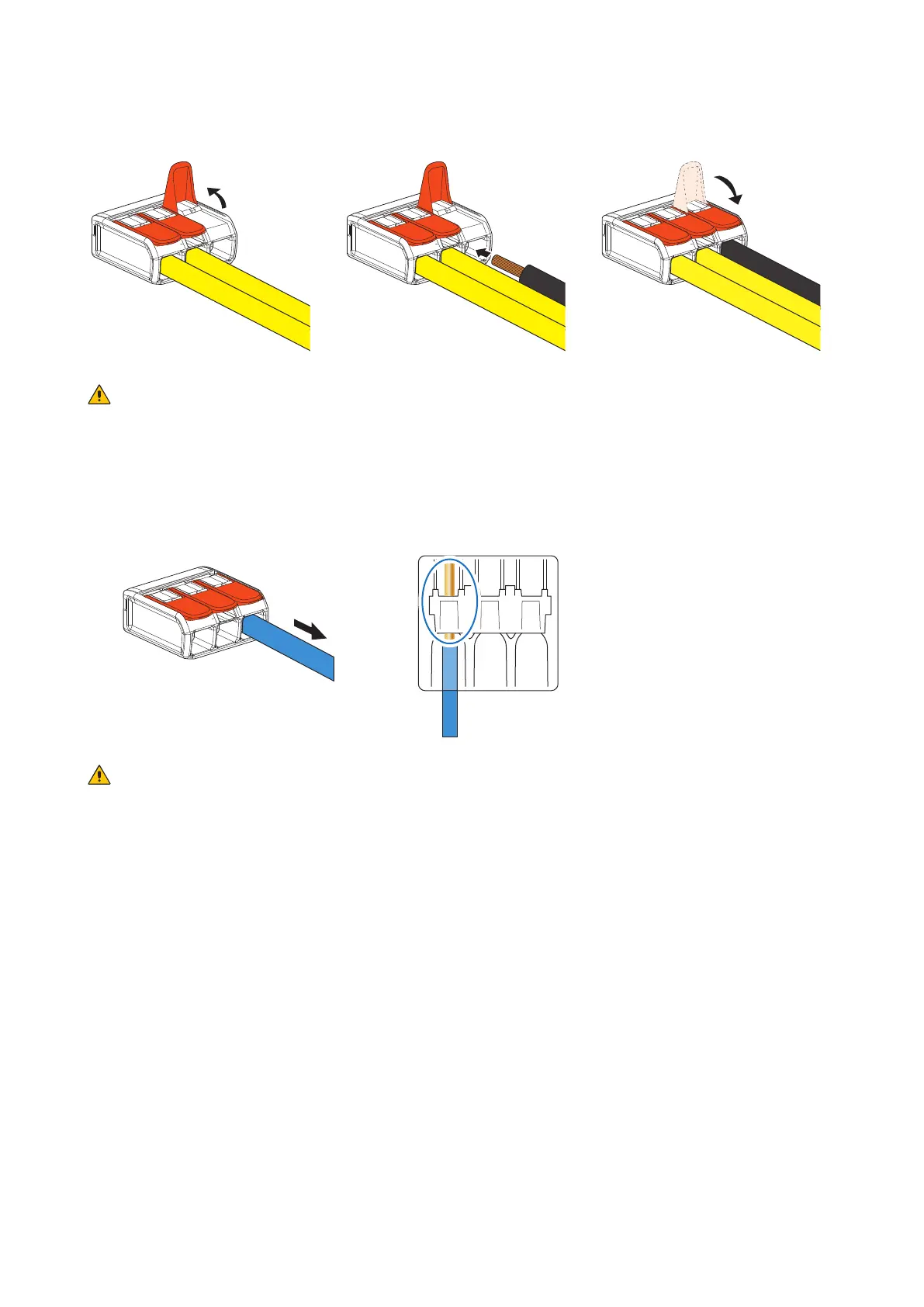 Lightly pull on the wires one by one to check that they will not be pulled out.