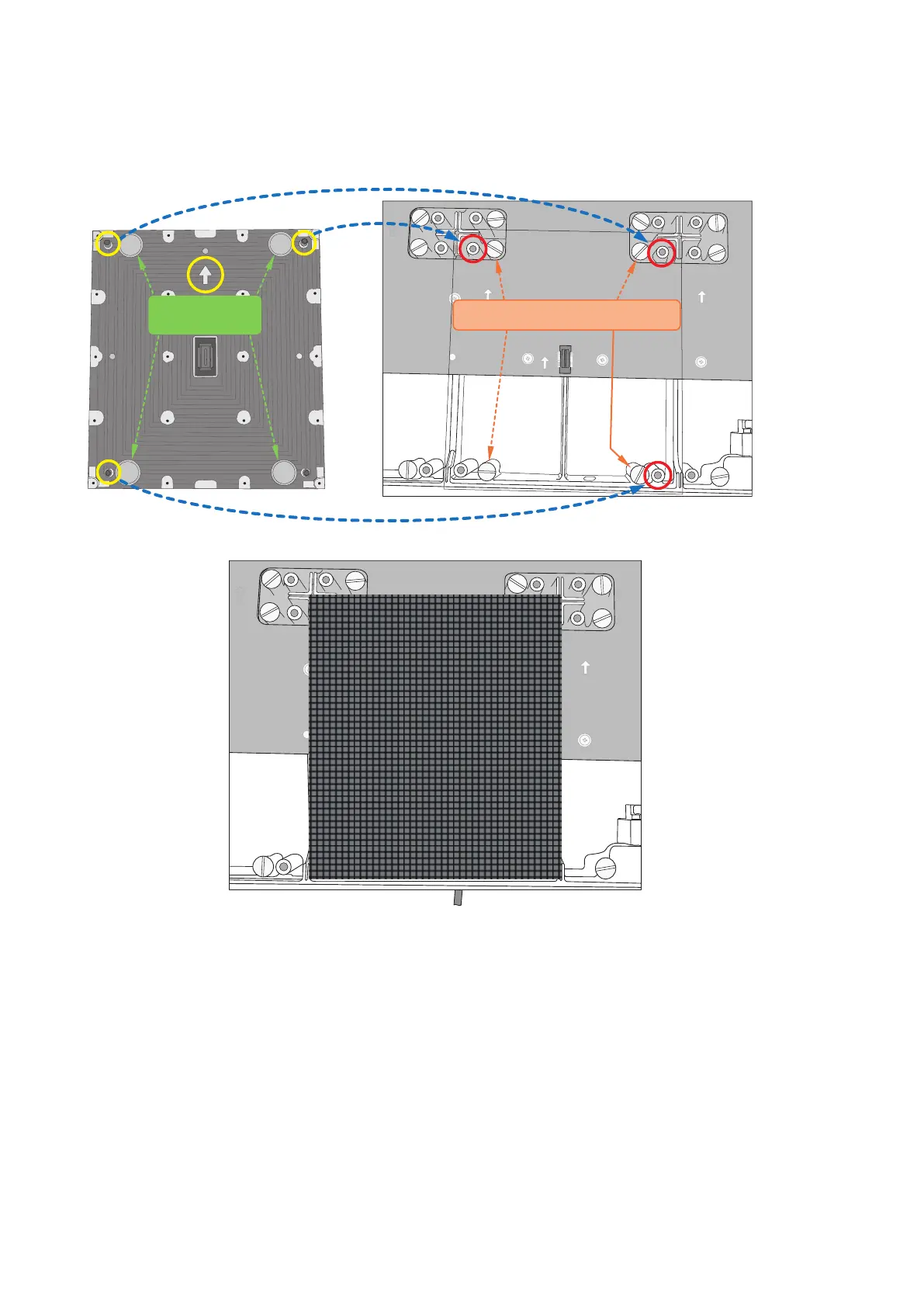 Install the pixel card into the cabinet with the four guide holes of the pixel card aligned with the four guide pins