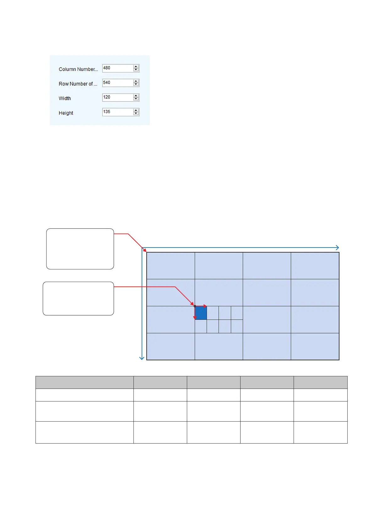 Row Number: The position (pixel) on the vertical axis of the starting point (top left) of the