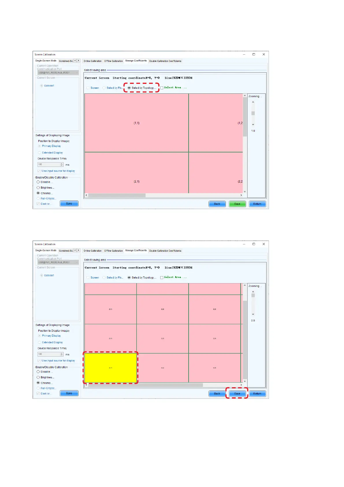 Select the module that uses the receiving card for which you want to save the calibration data.