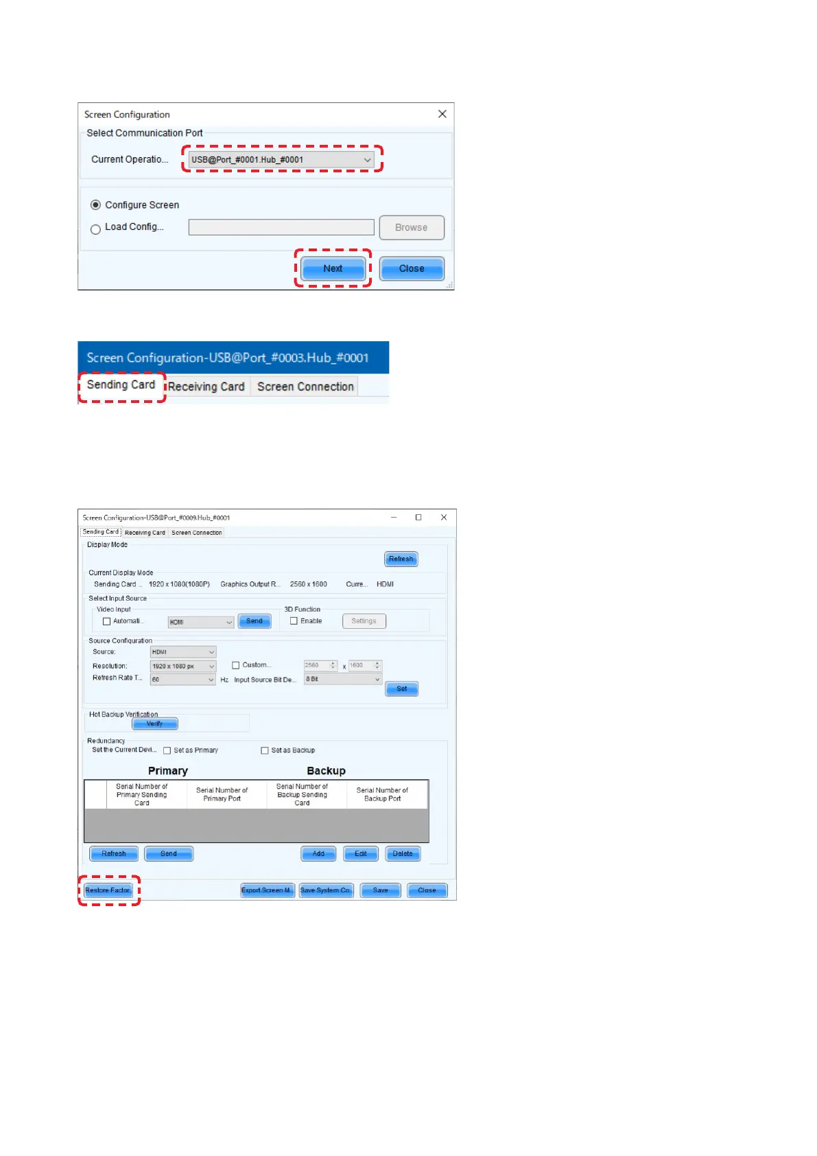 In the Screen Configuration screen that is displayed, select the “Sending Card” tab.