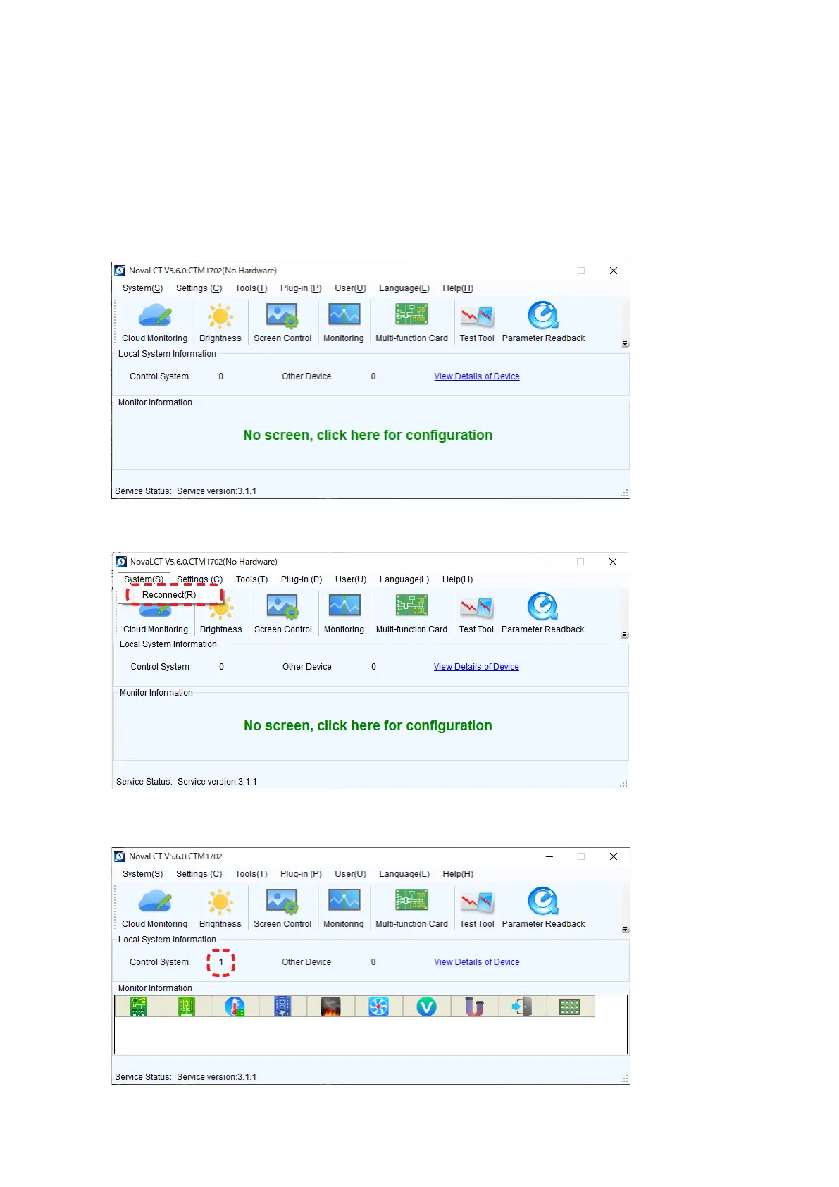 If the connection is not established after a while, click “System(S)” - “Reconnect(R)”.