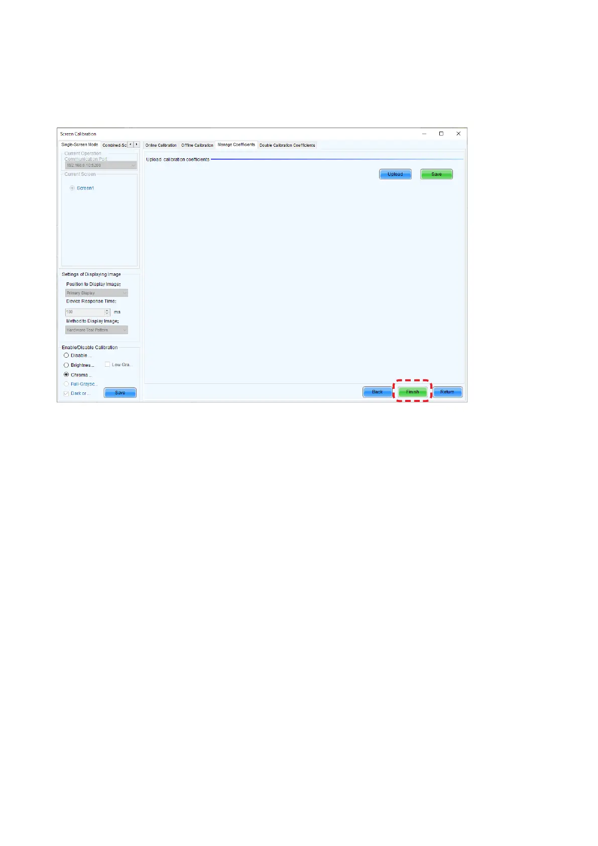 To write the data to the pixel card, execute the procedure in “4. Writing the calibration data from the receiving