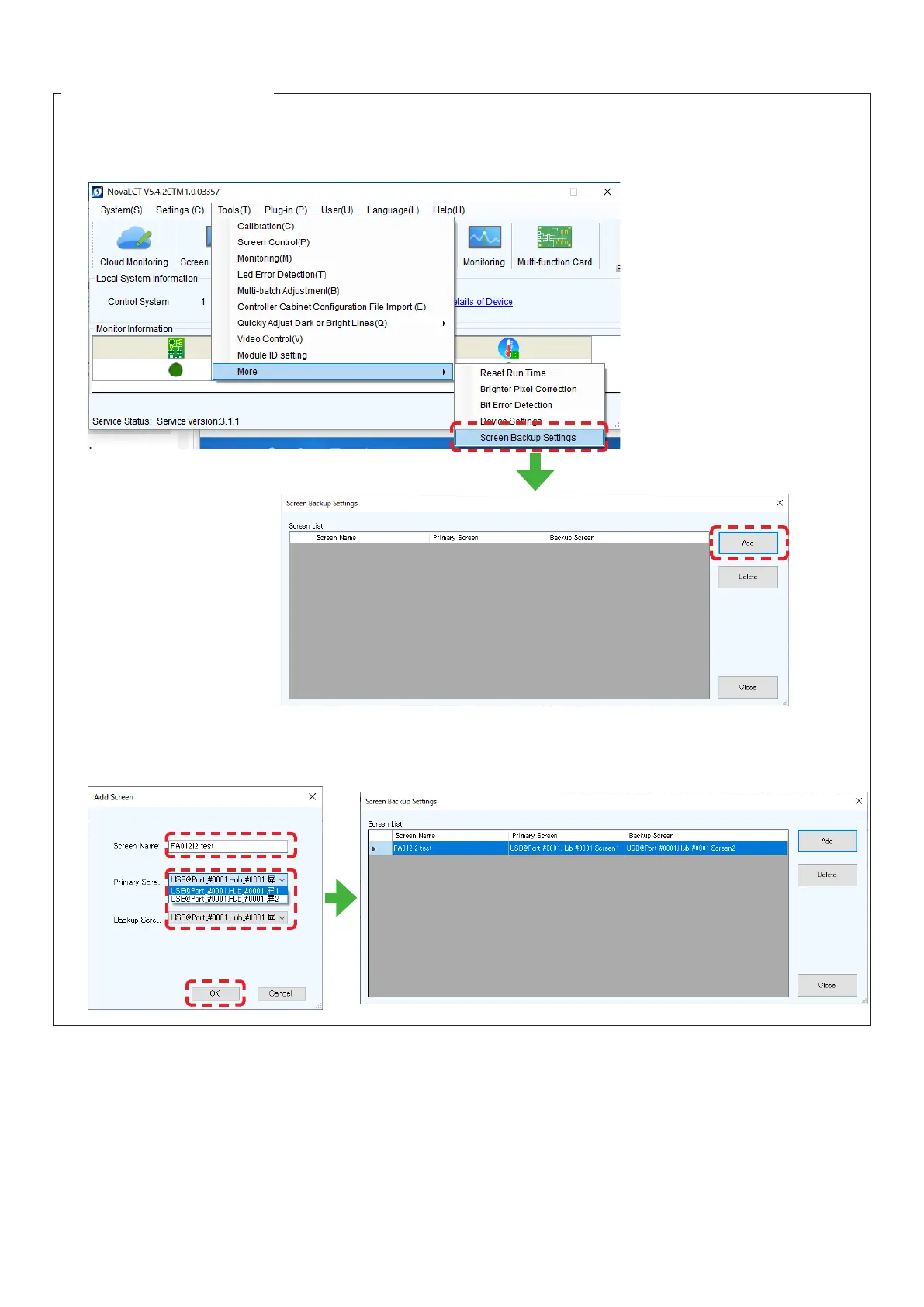 Select “Tool” - “More” - “Screen Backup Settings”.