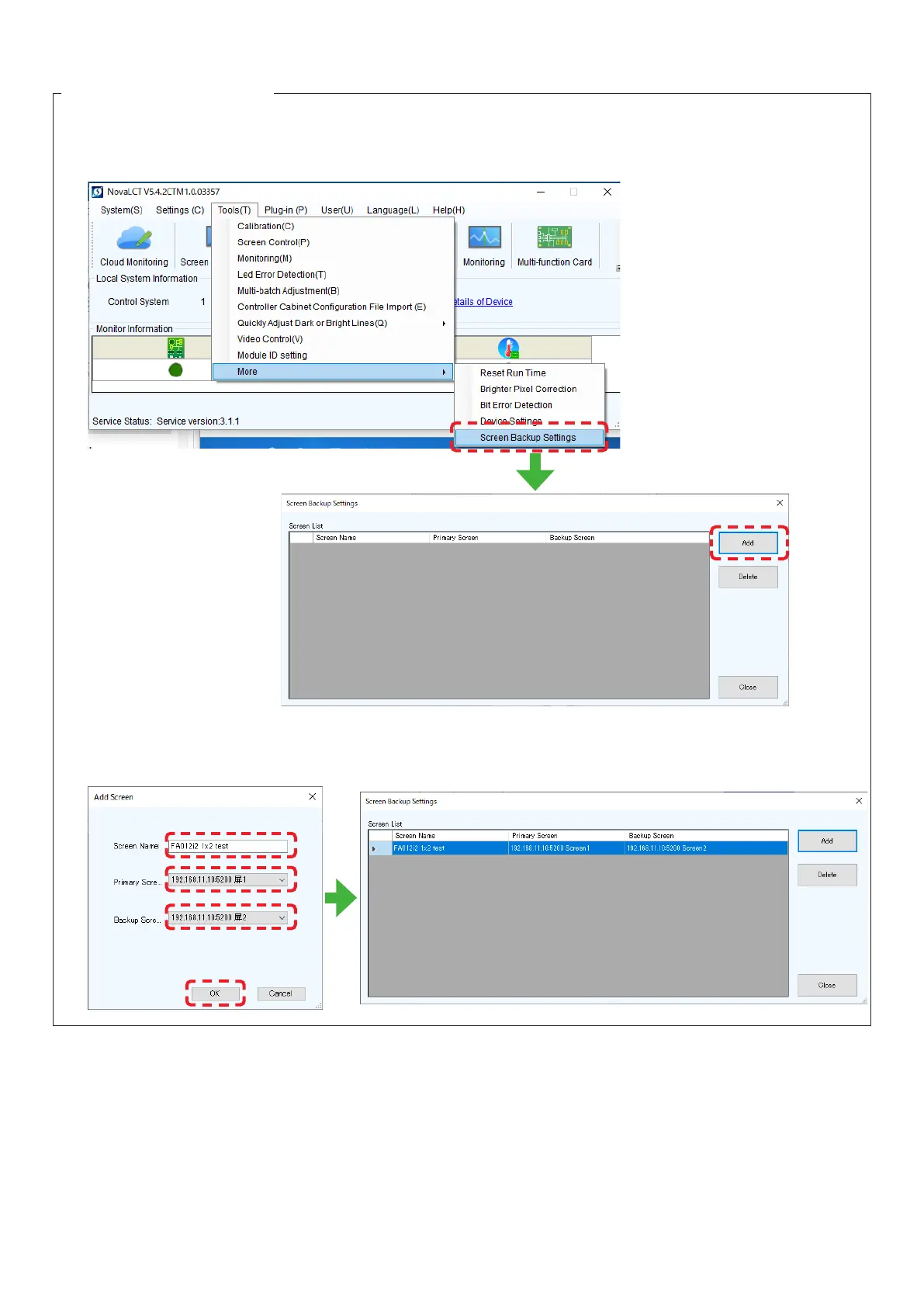 Select “Tool” - “More” - “Screen Backup Settings”.