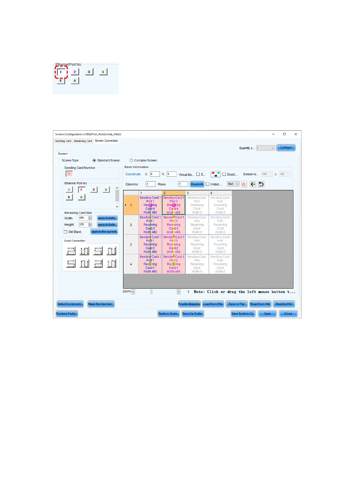Then select Port2 and select the cabinets from the bottom to the top as you did for Port1.