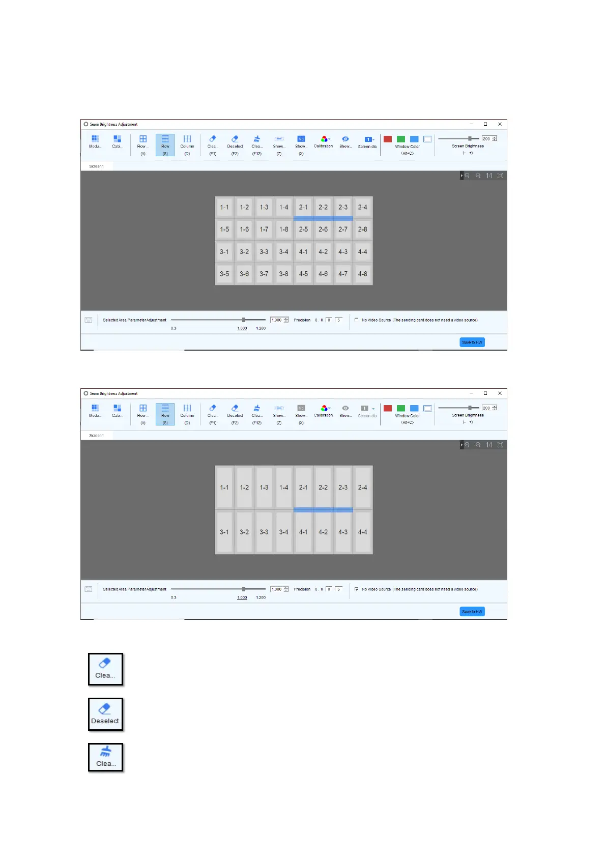 Specify the border between the pixel cards for which you want to perform line calibration by clicking on
