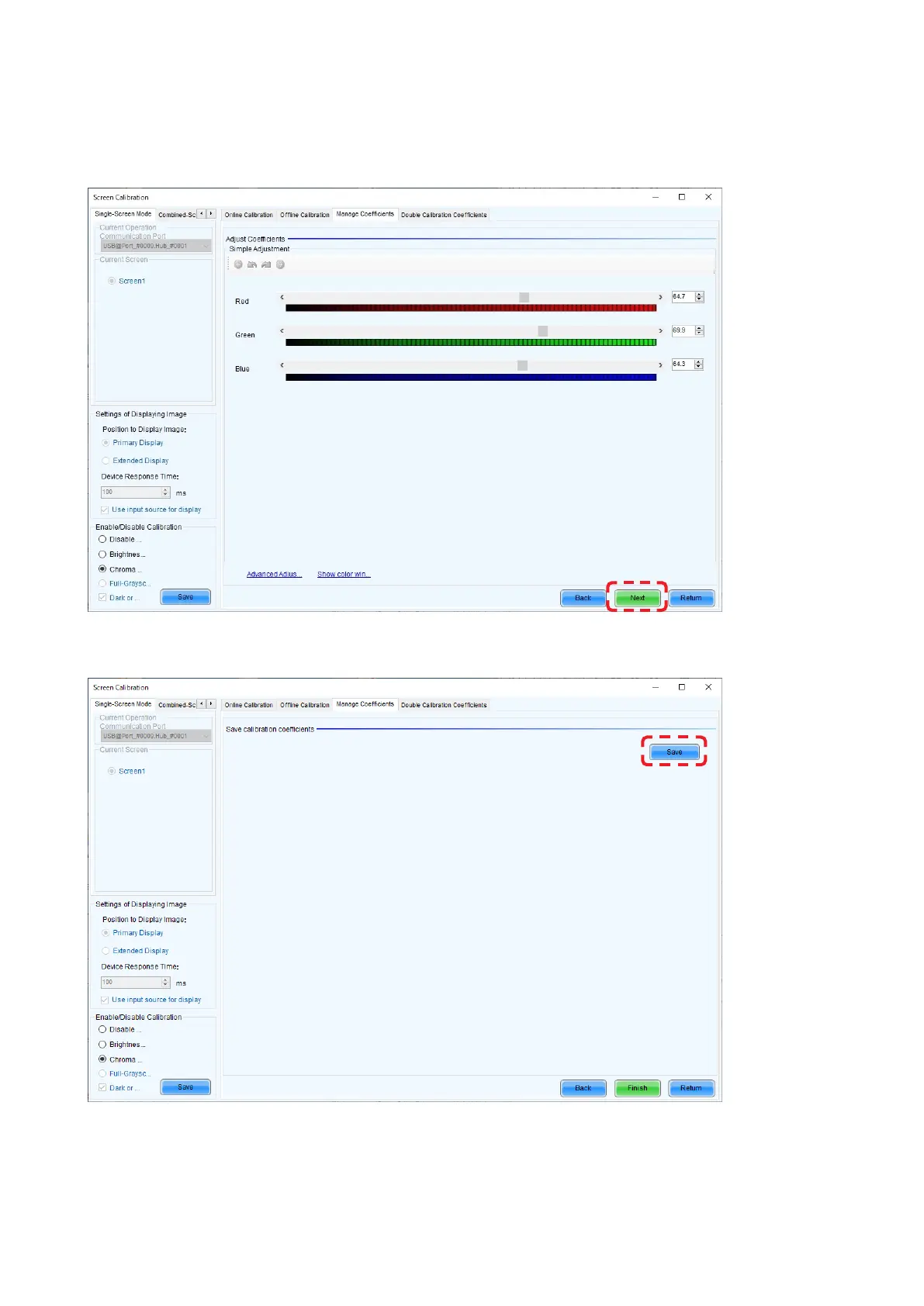You may exit the test pattern using the “esc” key. (The test pattern can also be displayed using the