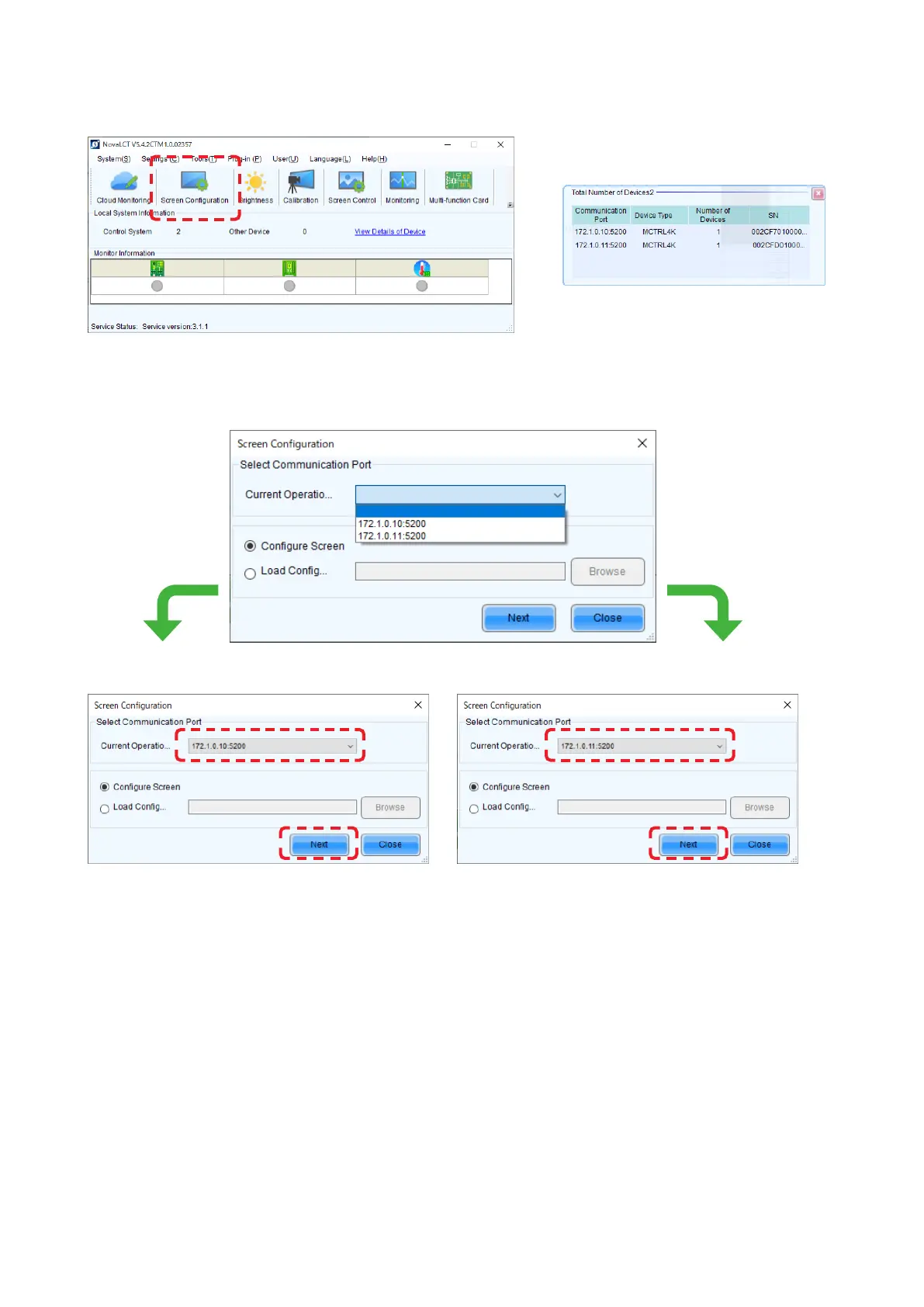 Check the port in “Select Communication Port”, select the Main (Primary) and Backup system LED controllers