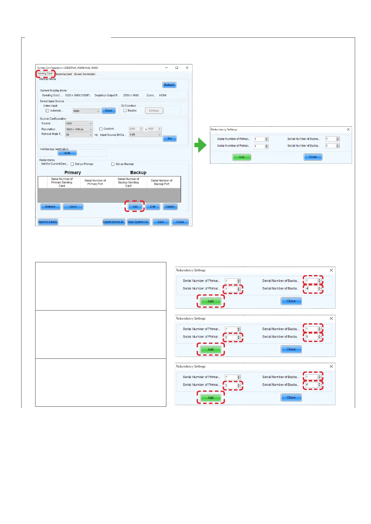 In the Redundancy Settings screen, set the Port to use on the LED controller.