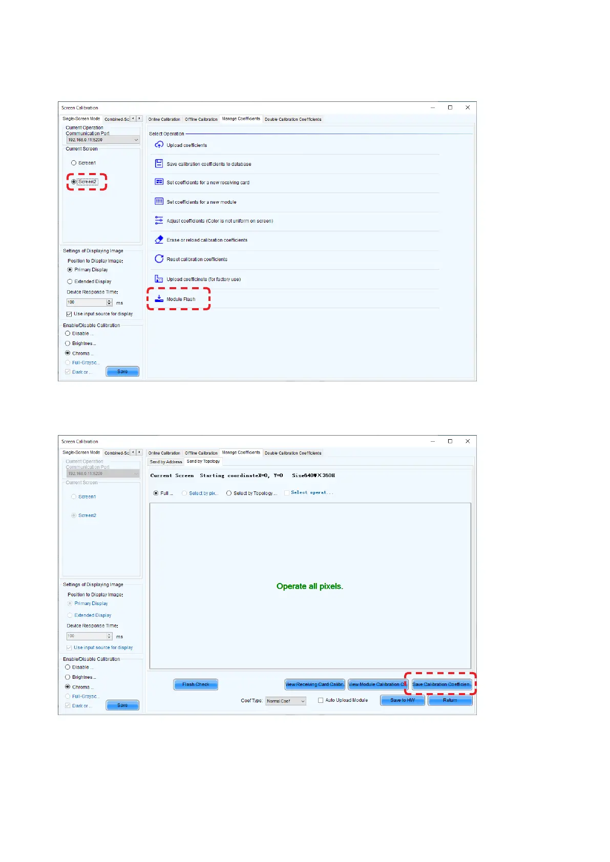 Click the “Save Calibration Coefcients to Receiving Card” button.