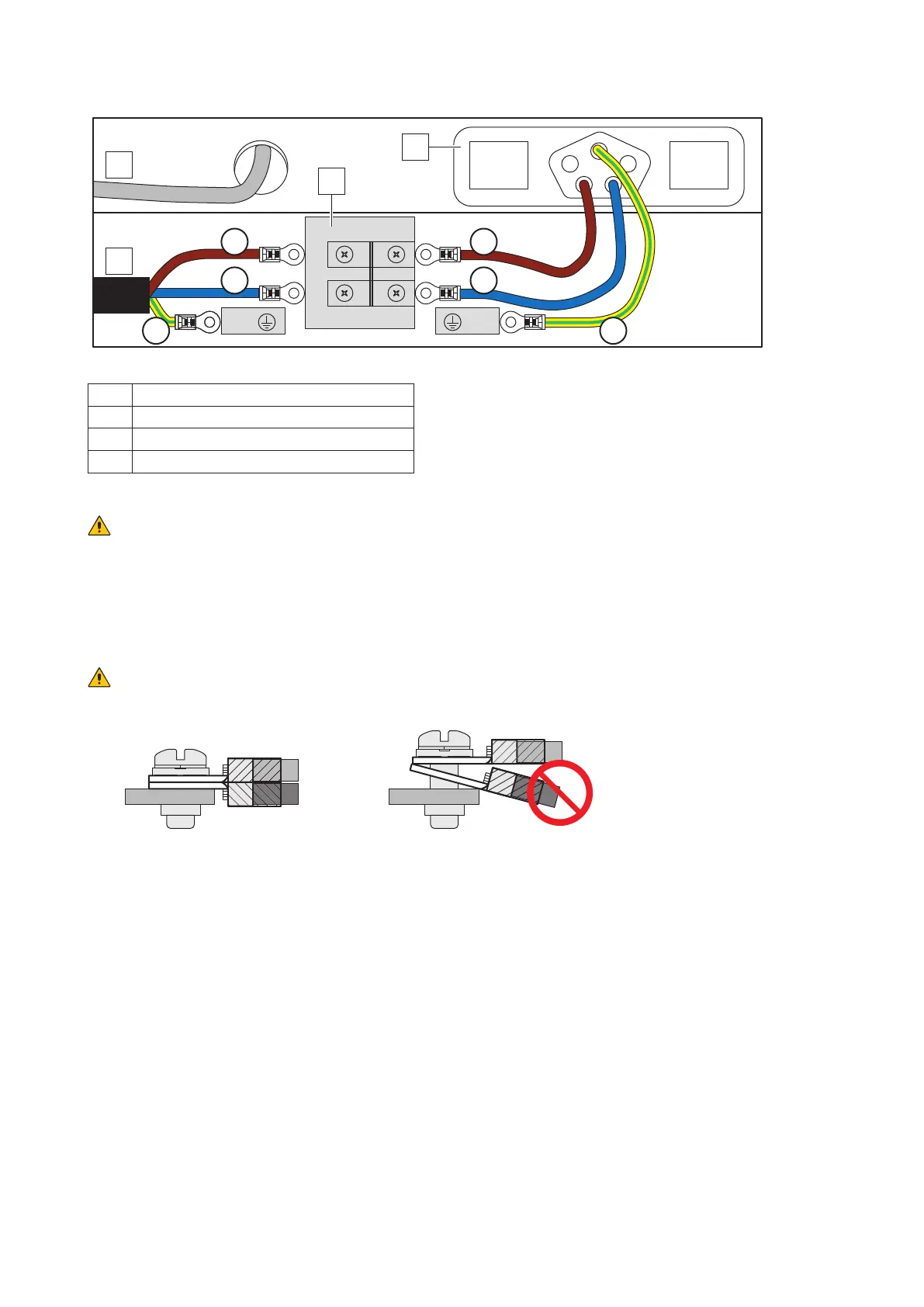 When attaching two cables with one screw, place the ring terminals of the cables back to back.