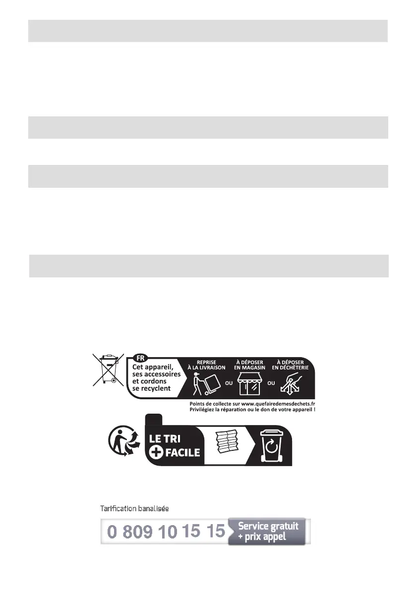 Si vous avez besoin d’assistance, contactez la HOTLINE CONSOMMATEUR ou le service après-vente pour des