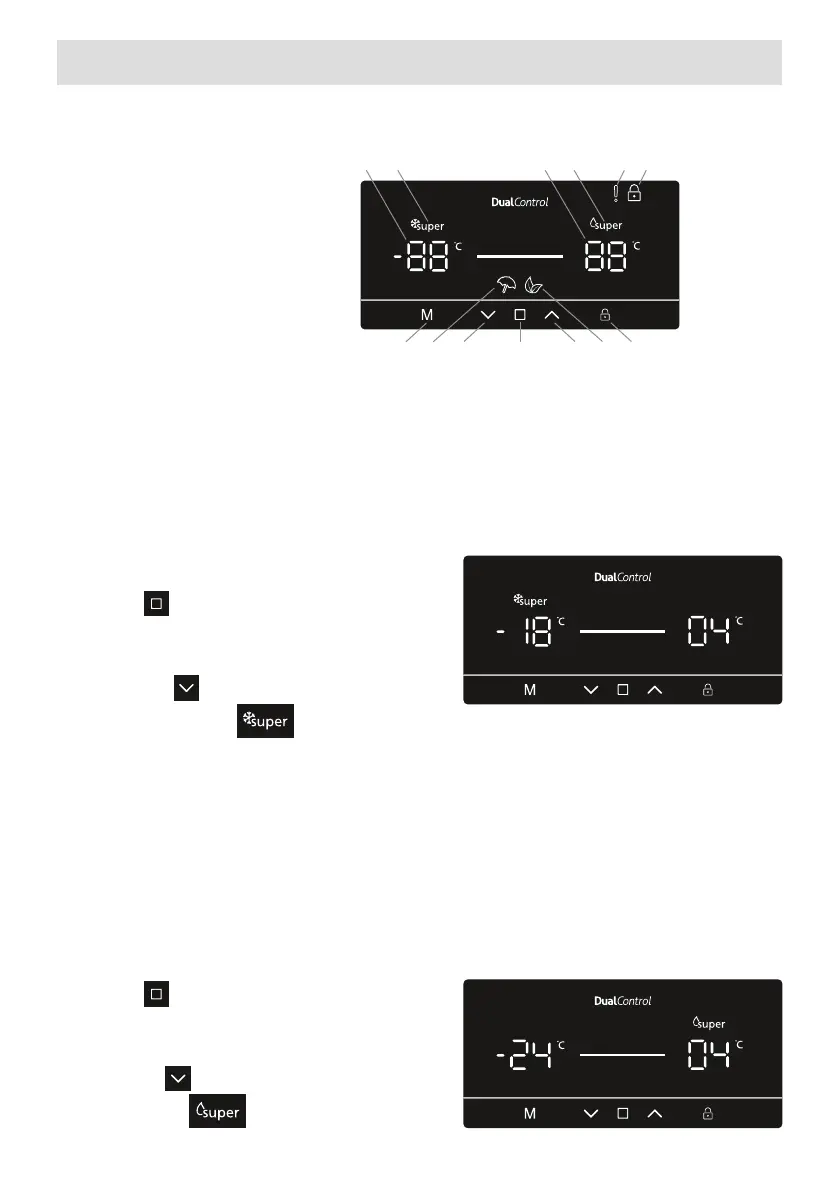 • Temperature of the fridge compartment may be adjusted, this will not impact Super Freeze Mode.