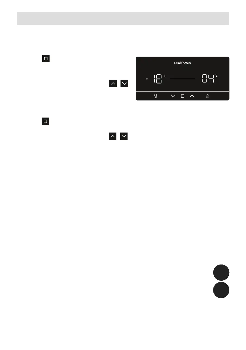 • Press icon (#9 on control panel diagram), until the ‘Fridge temperature setting’ is selected (#1).