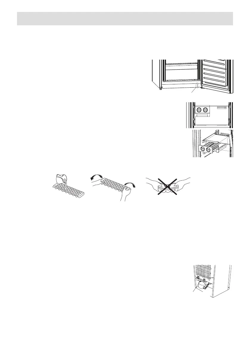 • Fryseboks må ikke fylles med vann for å lage is. Det kan være den er ødelagt.