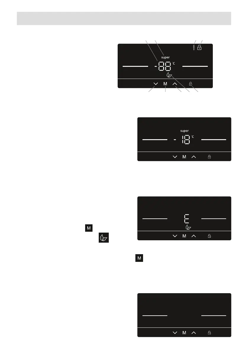 • Efter ljudsignalen visas frysens ursprungliga temperatur på skärmen.