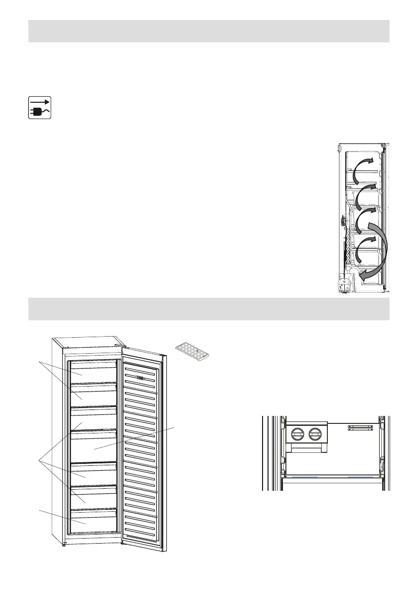 • Kun käytät pakastinta ensimmäistä kertaa, jätä se pystysuoraan asentoon vähintään 3 tunnin ajaksi ennen