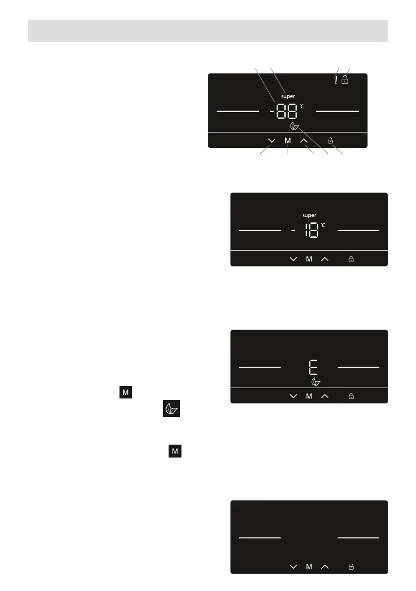 • Pakastimen lämpötilaa voidaan säätää, mutta säätöä ei oteta käyttöön ennen kuin Eko-tila on peruttu. Kun eko-