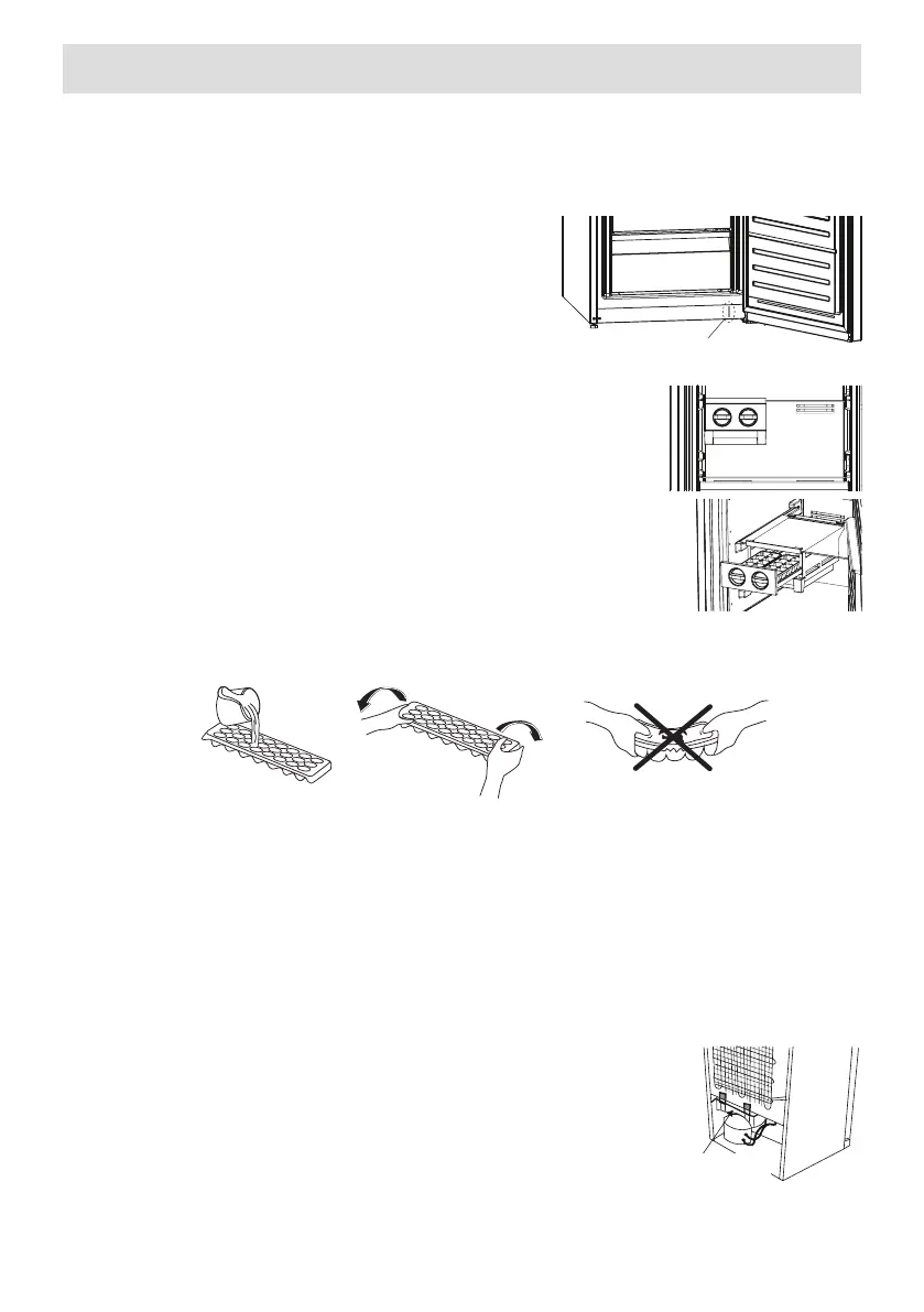 • Kun vesi on täysin jäätynyt, voit taivuttaa rasiaa alla olevan kuvion osoittamalla tavalla poistaaksesi jääkuutiot