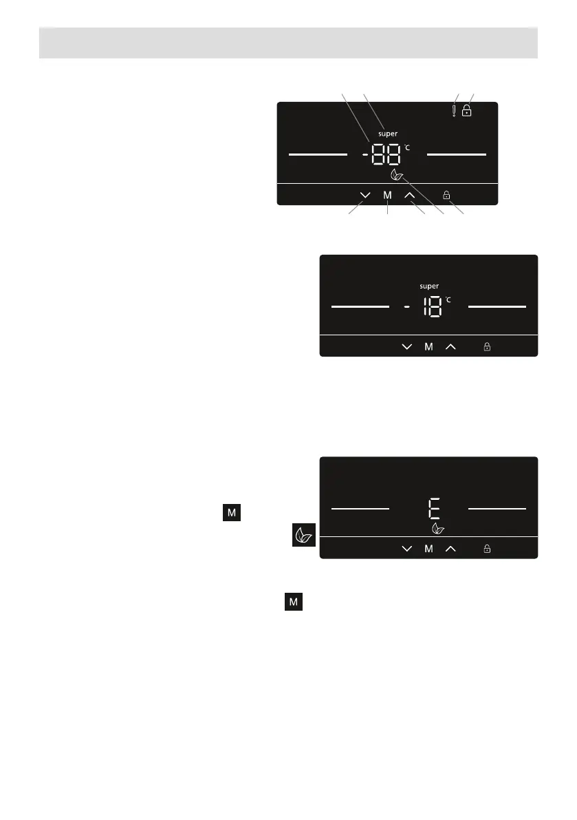 • Pärast helisignaali kuvatakse sügavkülmiku temperatuurisätte (#1) juures „E”.