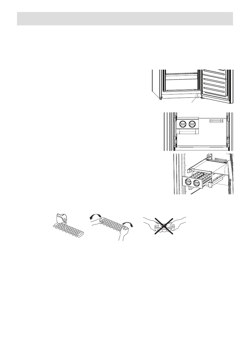 • Una volta che l’acqua si è trasformata in ghiaccio, è possibile agire sul vassoio come sotto indicato per ottenere
