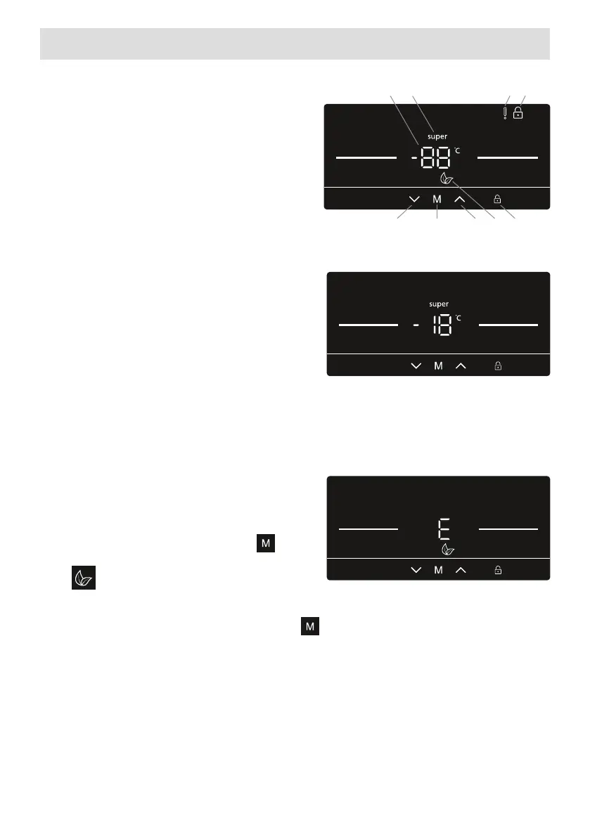 • Efter bippet vises fryserens oprindelige temperatur på skærmen.