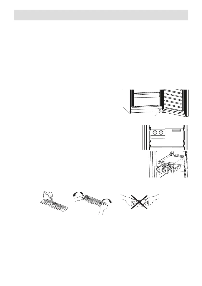 • Do not ll the icebox with water in order to make ice. It may be broken.