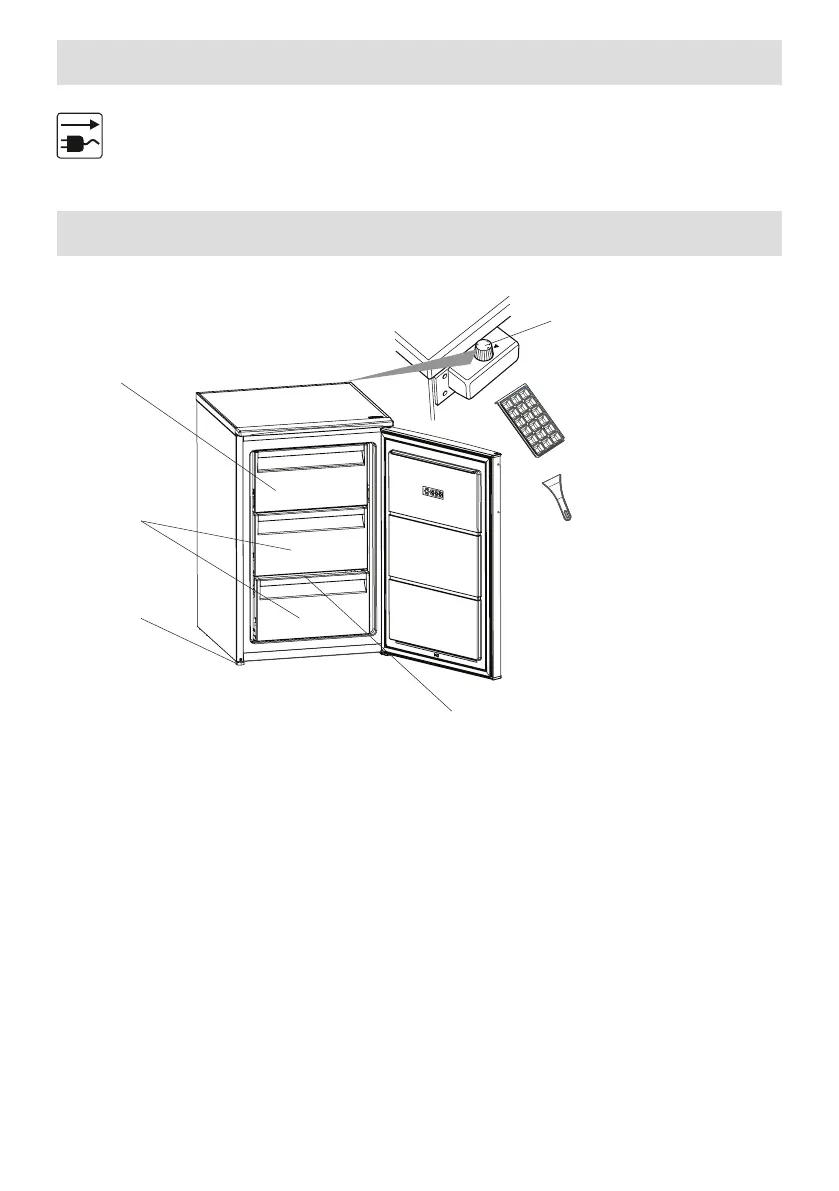 • Kun käytät pakastinta ensimmäistä kertaa, jätä se pystysuoraan asentoon vähintään 3 tunnin ajaksi ennen