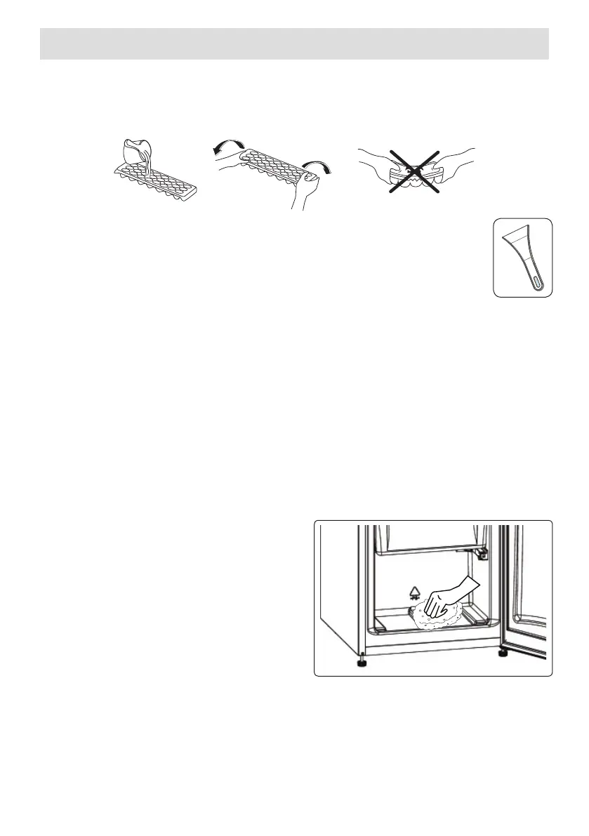 • Cuando el agua se haya transformado en hielo completamente, puede retorcer la bandeja tal como se indica