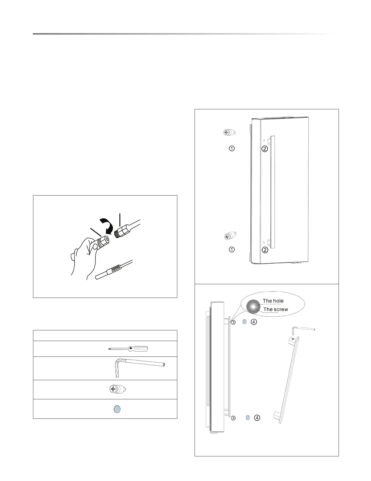 2. Attach the handle of the door through the bolt hole 1 and