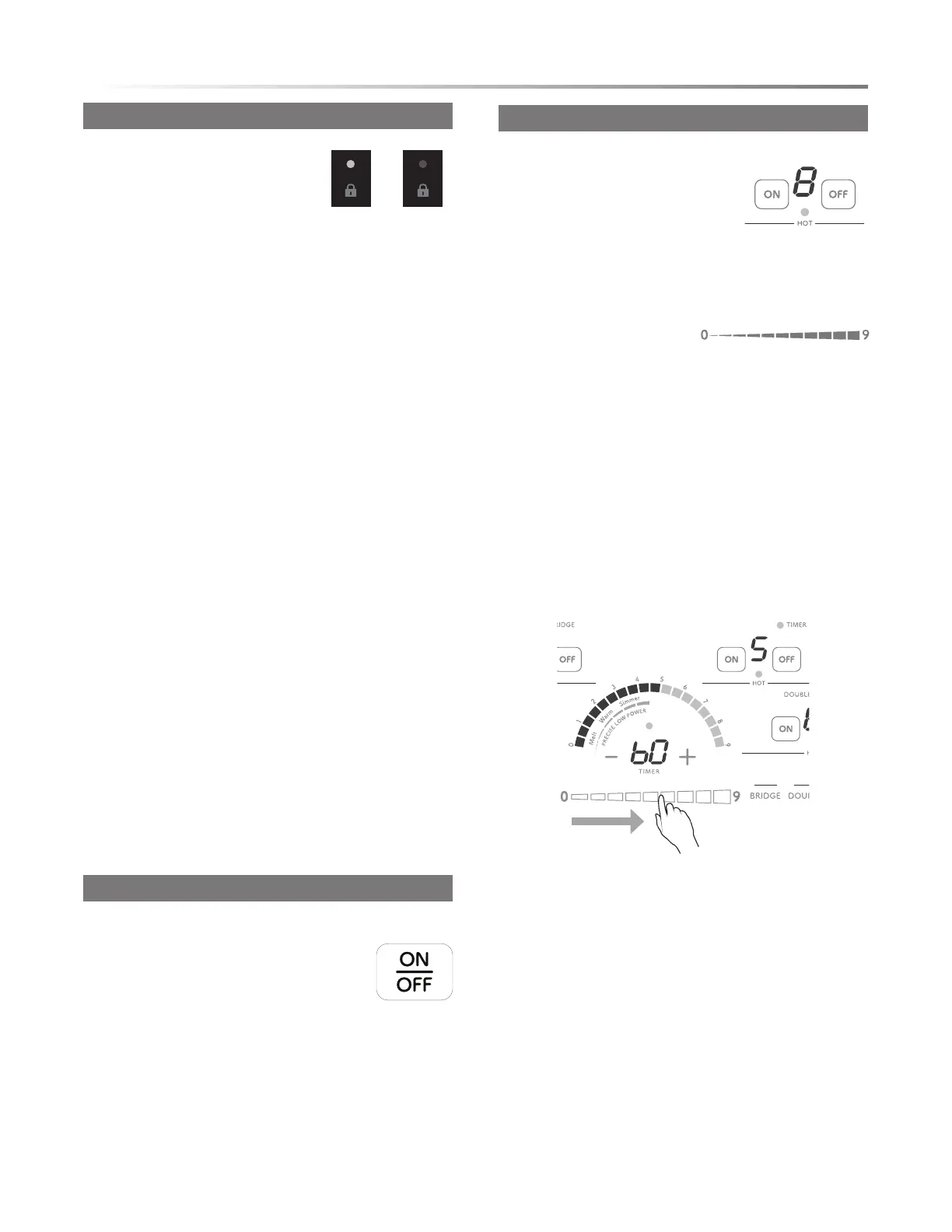 The cooktop is switched OFF by touching the ON/OFF keypad