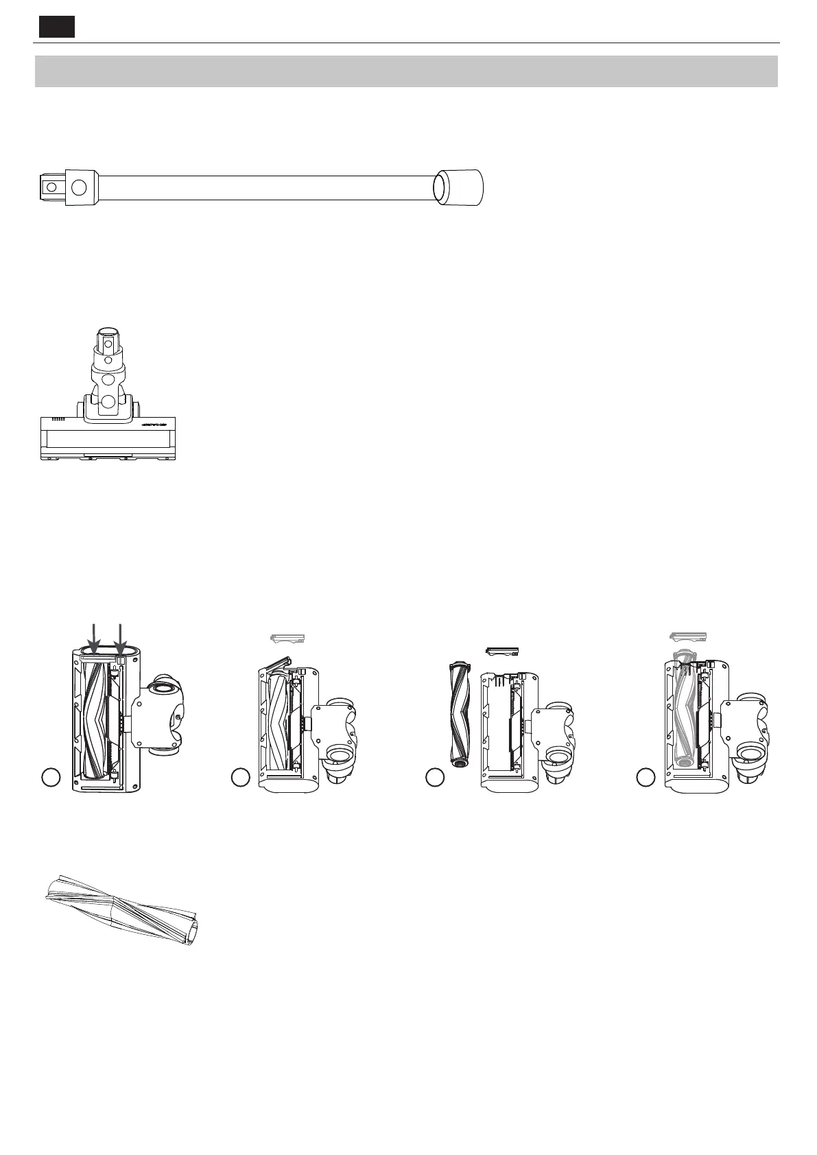 Use this tool with the motorised head to allow easy cleaning of oors.