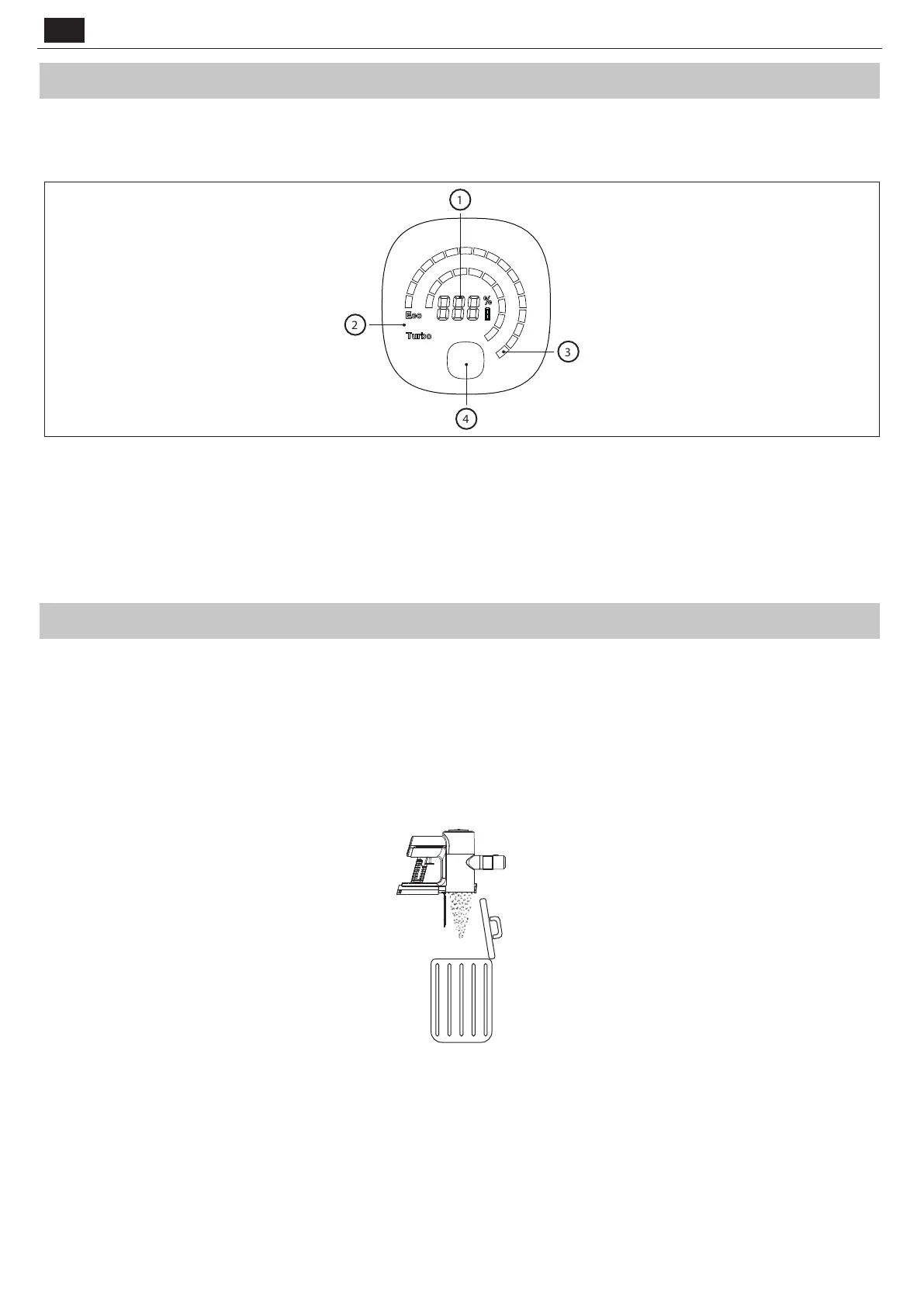 To change the speed of the motor from ECO (most ecient) to Turbo (most powerful), press this button. When the unit is o, press