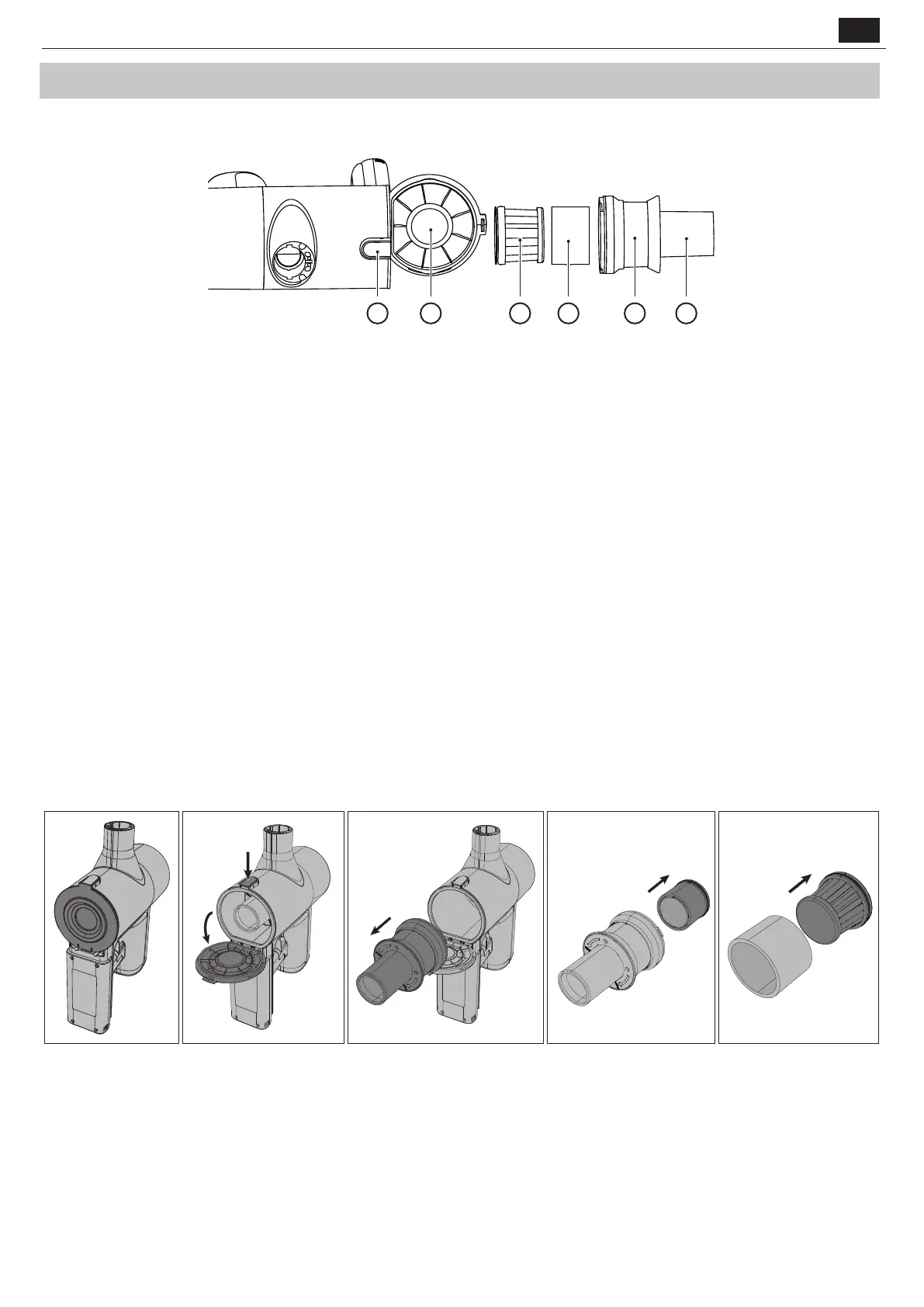 4. Make sure high density lter assembly is secure (by turning clockwise) before closing dust bin door.