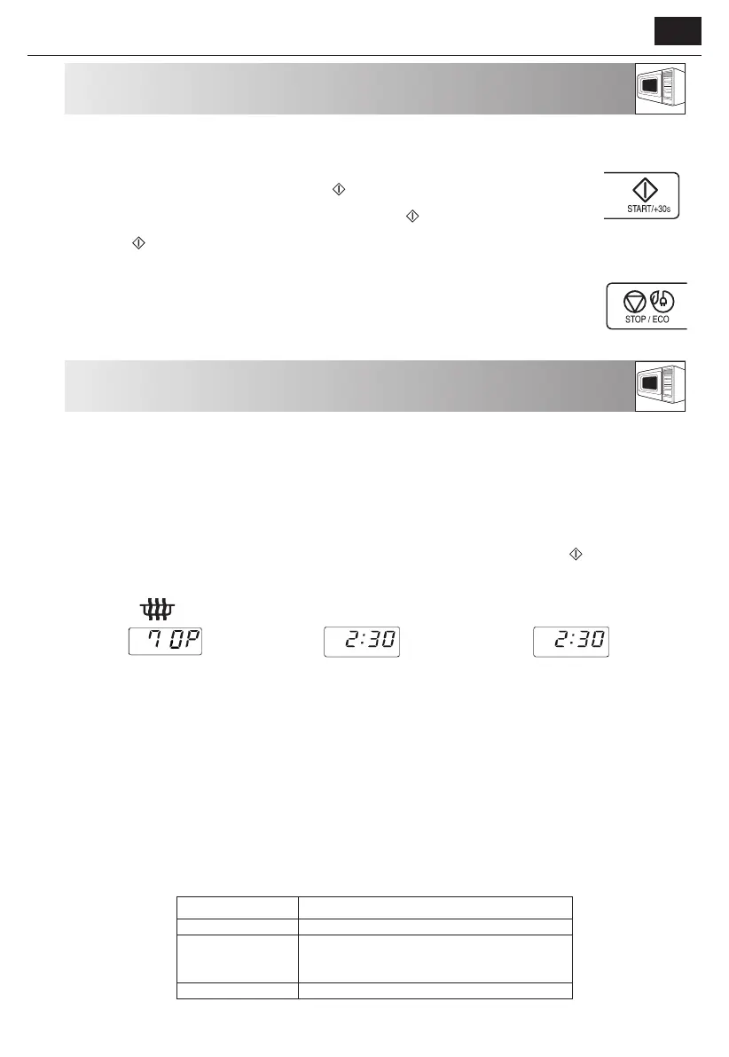 stops automatically. The cooking/ defrosting time starts to count down again when the door is closed and