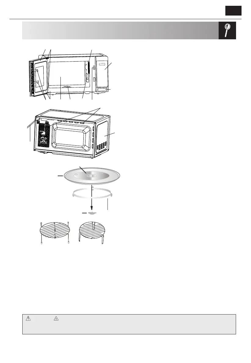 • The waveguide cover is fragile. Care should be taken when cleaning inside the oven to ensure that it is not