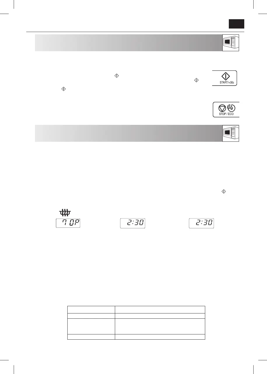 • Quando a cozedura/descongelar estiver completa, abra a porta ou carregue no botão STOP e a hora voltará