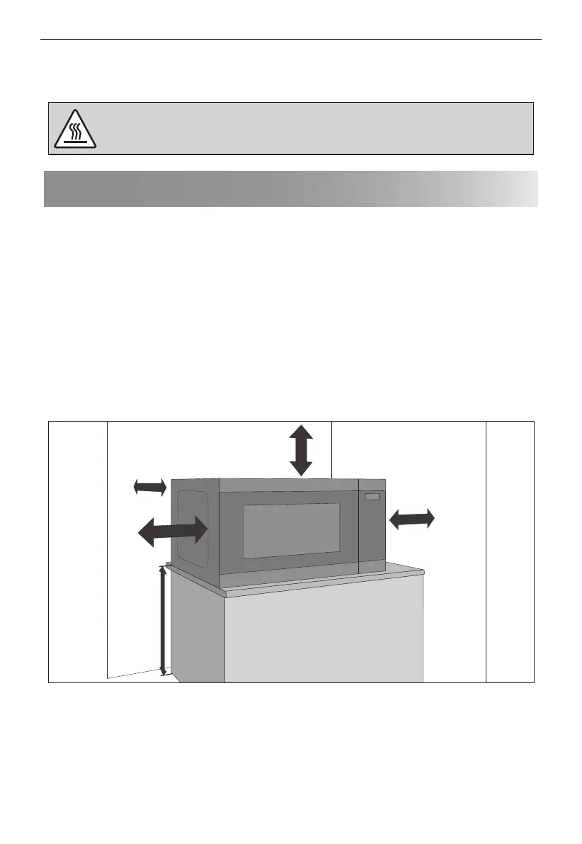 • A minimum space of 20 cm is required between the sides of the microwave oven and any adjacent walls or objects.