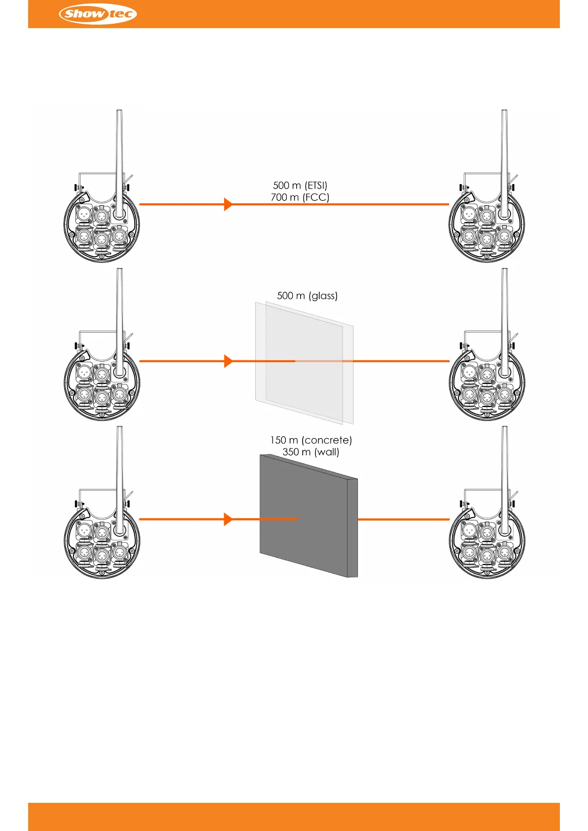 transmission range. It is important to always have a clear line of sight between transmitters and receivers.