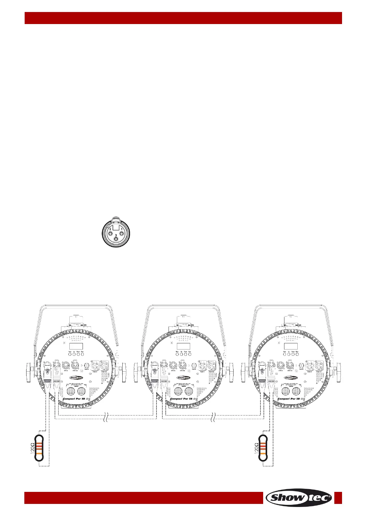 03) Use a 3-p XLR cable to connect the Compact Par and other devices.