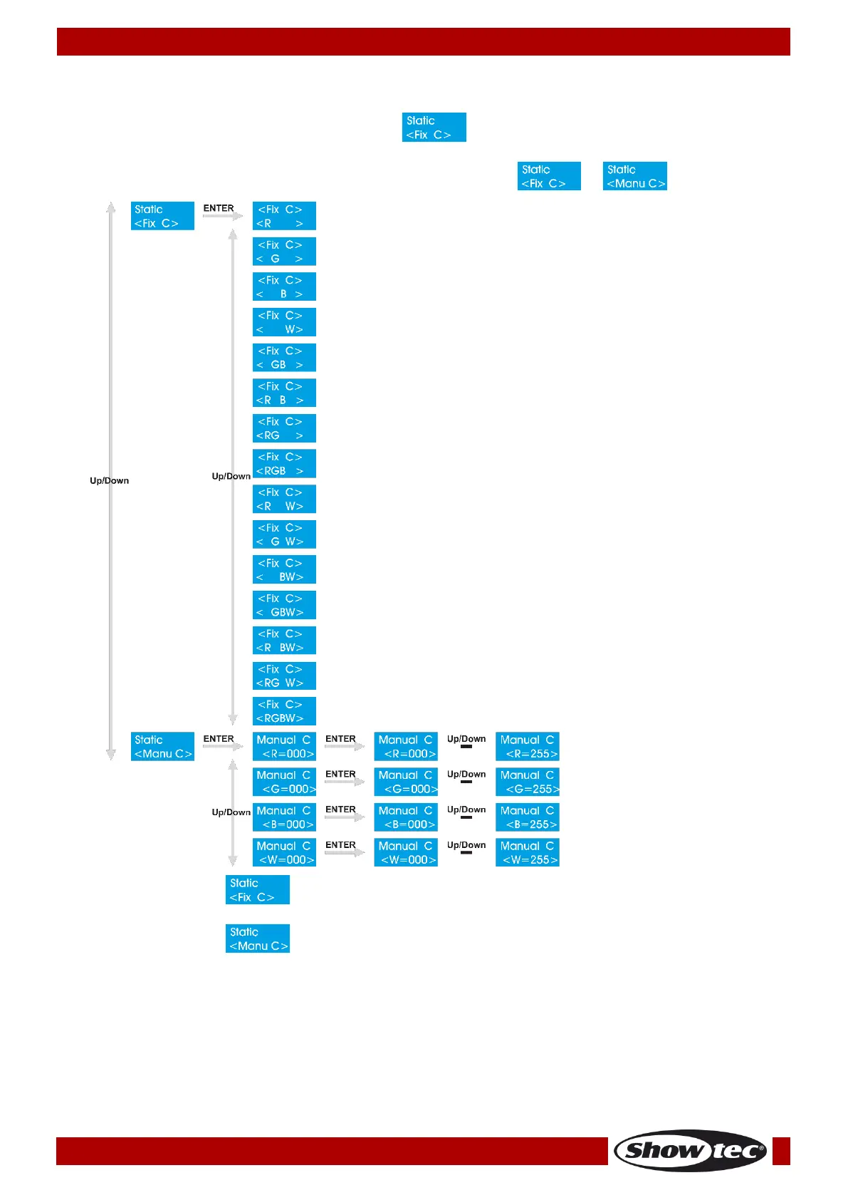 07) Press the Up and Down buttons to adjust Red, Green, Blue or White.